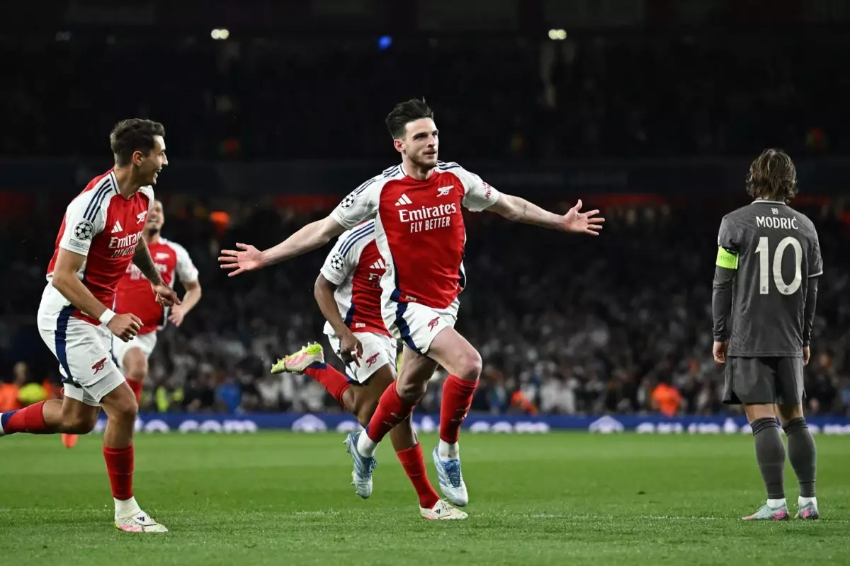 Arsenal, müsabakanın 58. dakikasında Declan Rice ile öne geçti. Bu dakikada özgür vuruşta topun başına geçen İngiliz yıldız, olağanüstü bir vuruşa imza atarak grubunu öne geçirdi.