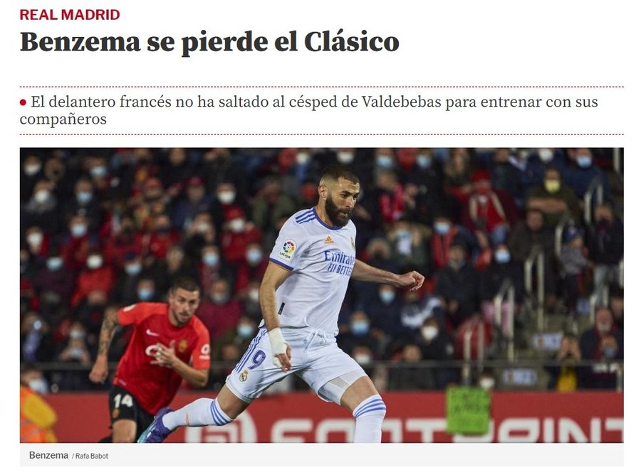 İspanyol basınında yer alan haberlere nazaran Mallorca maçında sakatlanan Fransız futbolcu, idmana çıkmadığı için Barcelona’ya karşı oynanacak kritik çabada forma giyemeyecek. Madrid’de ayrıyeten Mendy’nin de sakatlığının bulunduğu bildirildi.