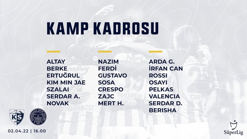 Harika Lig’in 31. haftasında Fenerbahçe deplasmanda Kayserispor ile karşılaşacak. Son 6 maçında 5 galibiyet ve 1 beraberlik alan Kanarya, 4 maçtır kaybeden Kayserispor karşısında da kazanarak çıkışını sürdürmek istiyor.