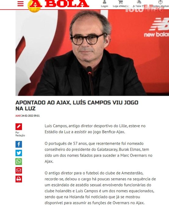 A Bola’nın haberine nazaran; Luis Campos bu atılımıyla, Ajax’ta Overmars’ın rollerini üstlenmeye hazır olduğunu gösterdi.
