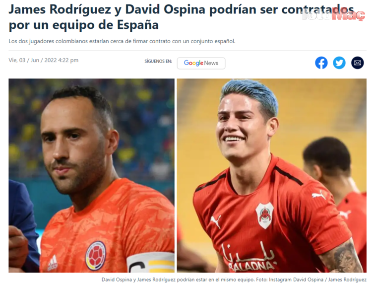 Kolombiya basınında çıkan haberde James Rodriguez’in yeni adresi duyuruldu. Haberde, Rodriguez’in yeni durağının İspanya olacağı yazıldı.