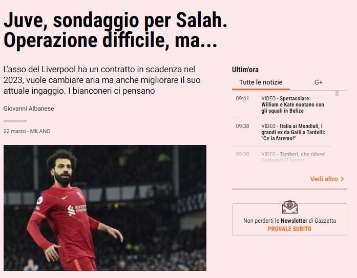 La Gazzetta dello Sport’ta yer alan habere nazaran Juventus, Liverpool’dan ayrılmak ve maaşını yükseltmek isteyen Mısırlı futbolcu Mohamed Salah’la ilgileniyor. Salah’ın mevcut maaşının yıllık 12 milyon euro olduğu hatırlatılırken İtalyan takımının Rudiger, Pogba ve Jorginho üzere isimler üzerinde de çalışmalar yürüttüğü kaydedildi.