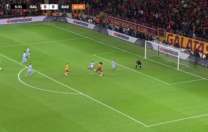 UEFA Avrupa Ligi’ndeki temsilcimiz Galatasaray, 0-0’ın rövanşında alanında Barcelona ile karşı karşıya geldi. Sarı-Kırmızılılar gayretin şimdi 9. dakikasında Gomis ile Çok değerli bir gol fırsatı yakaladı. Bafetimbi Gomis, ceza alanına hareketlenerek yapılan ortada topu denetim etti ve kaleye gönderdi, lakin bu şutu rakip defans oyuncusu kayarak engelledi.
